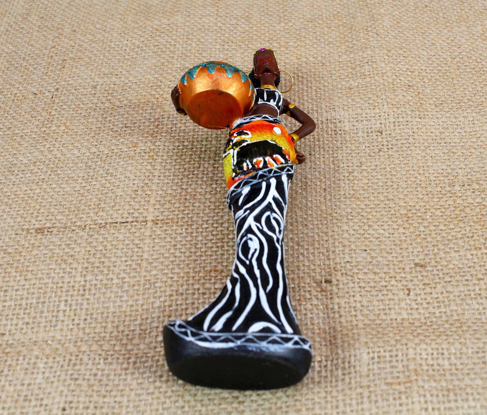 Add cultural beauty and artistic elegance to your space with this African Woman Polyresin Figurine. Designed with fine detailing and vibrant colors, this statue features an African woman dressed in a traditional tribal outfit, celebrating heritage, grace, and timeless African artistry.